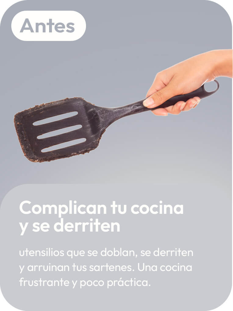 ¿Sabías que tus utensilios también pueden cuidar tus ollas? Protege tus superficies antiadherentes sin rayarlas ni dañarlas, para que tus ollas luzcan como nuevas por más tiempo.