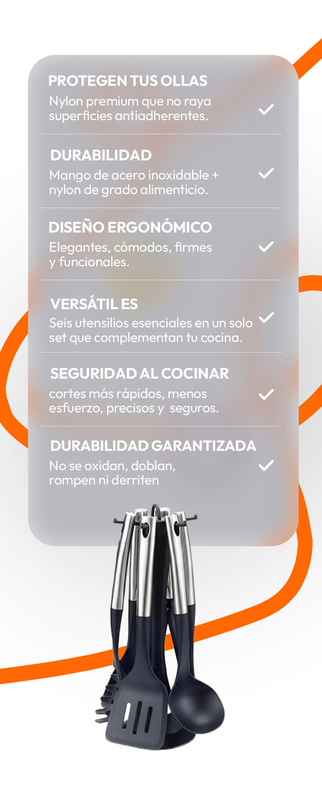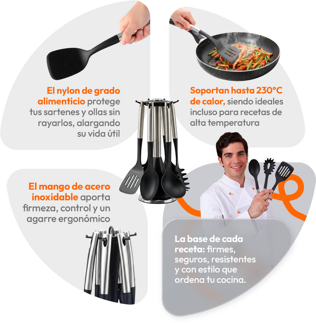 Set de Utensilios de Nylon con Mango de Acero Inoxidable