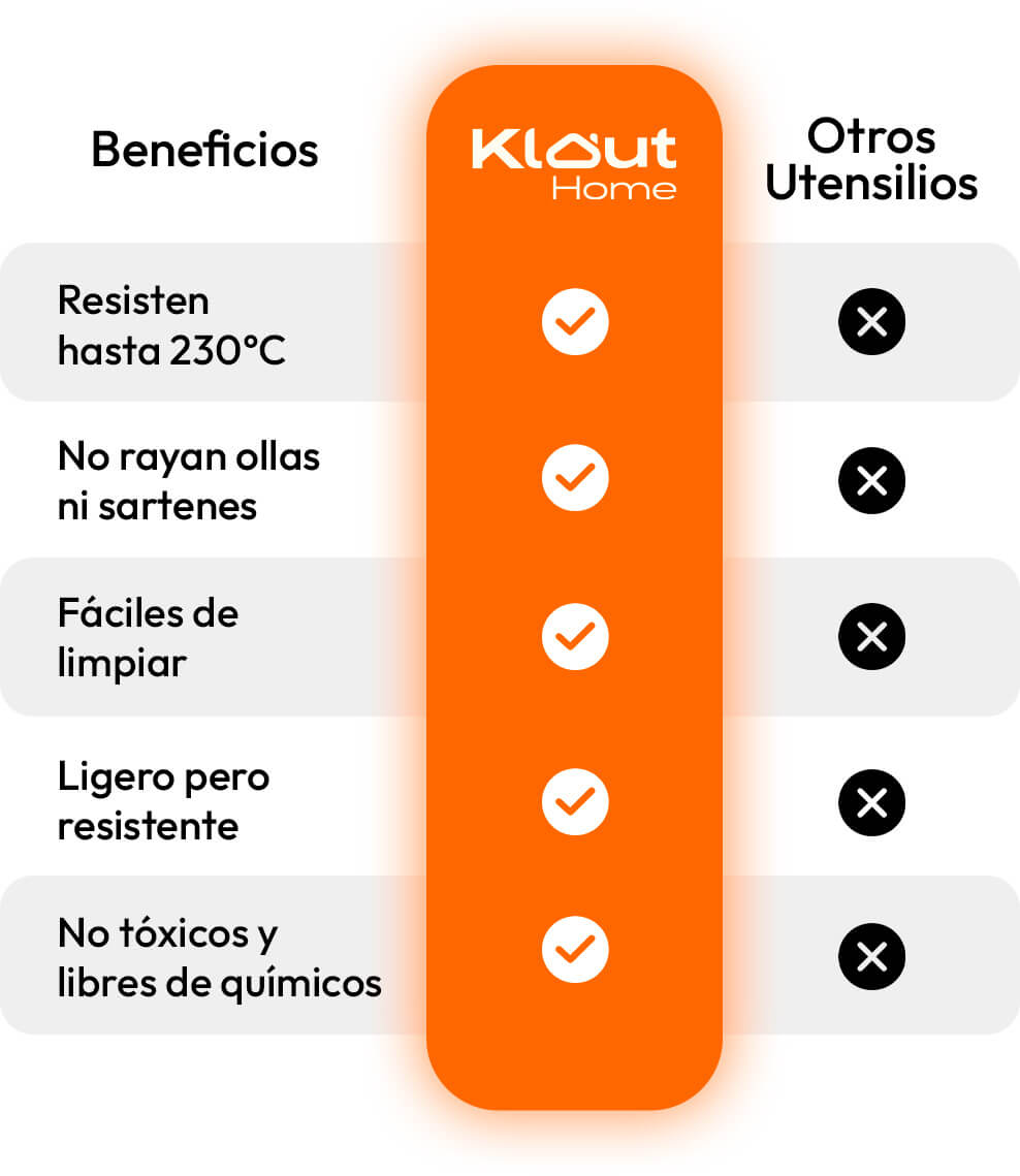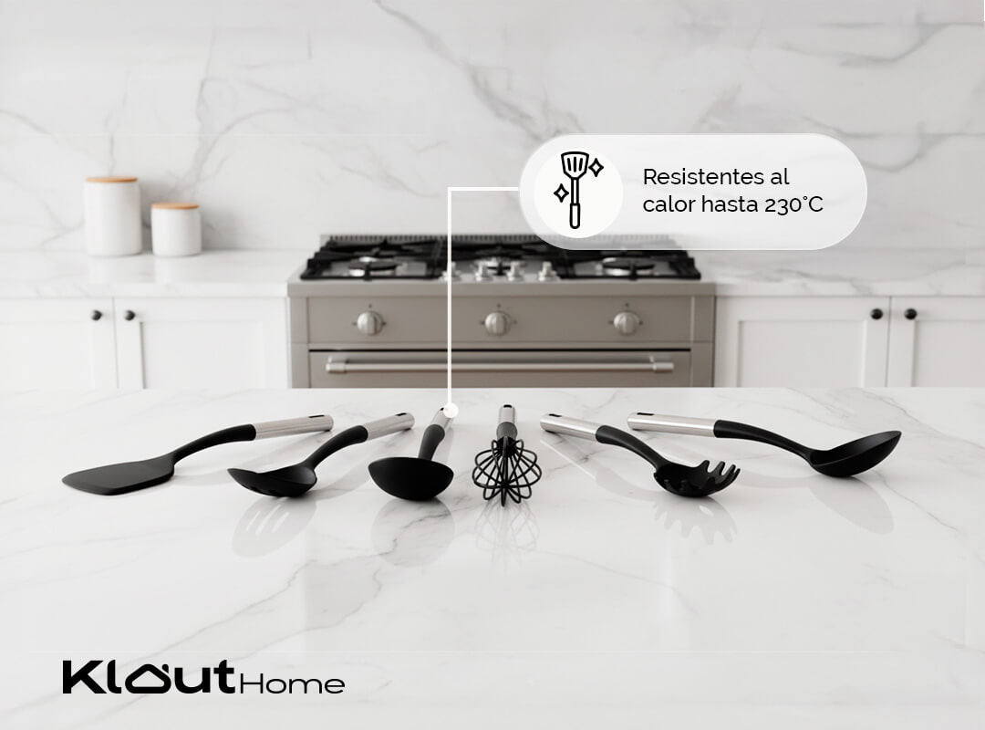 El nylon premium Klout Home es suave con tus ollas y resistente con el calor.
