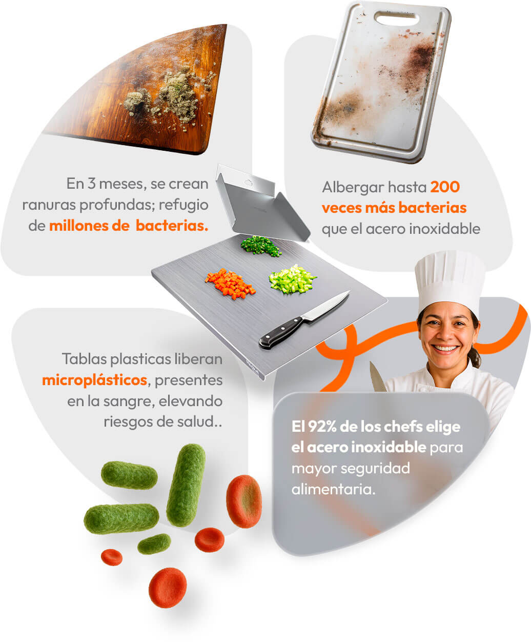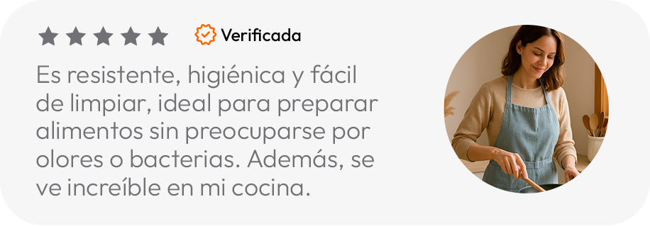 A diferencia de las tablas tradicionales que absorben manchas permanentemente, nuestra tabla se limpia con un simple paño húmedo y luce como nueva después de cada uso, incluso con alimentos que típicamente manchan como la remolacha o el café.